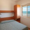 Camera da letto con finestra vista mare, letto matrimoniale e mobili in legno chiaro.